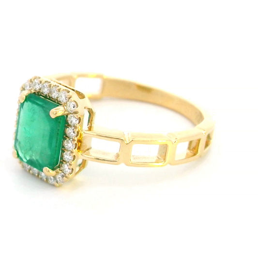 18K Yellow Gold Emerald-Cut Emerald and Diamond Halo Ring