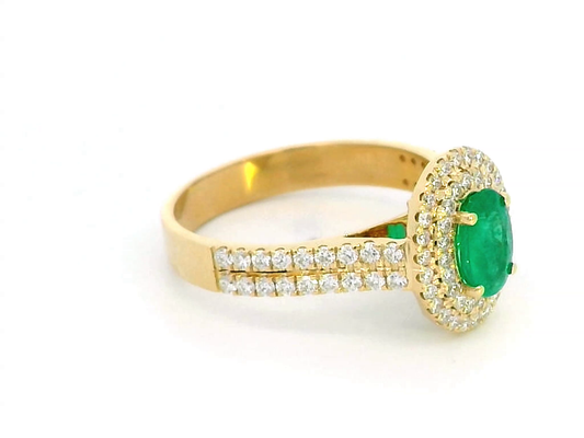 Stunning 18K Gold Oval- Cut Emerald and Diamond Halo Ring-0.53ct Emerald