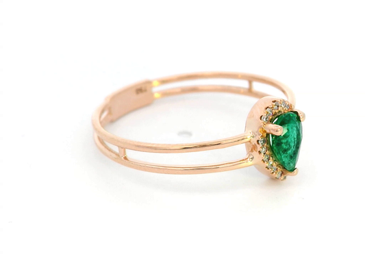 18K Gold Pear-Cut Emerald and Diamond Halo Ring – 0.37ct Emerald
