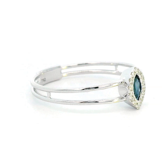 18K Gold Marquise-Cut Blue Sapphire and Diamond Halo Ring