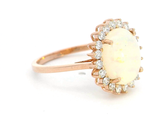 18K Rose Gold Opal and Diamond Halo Ring – 0.93ct Oval Opa