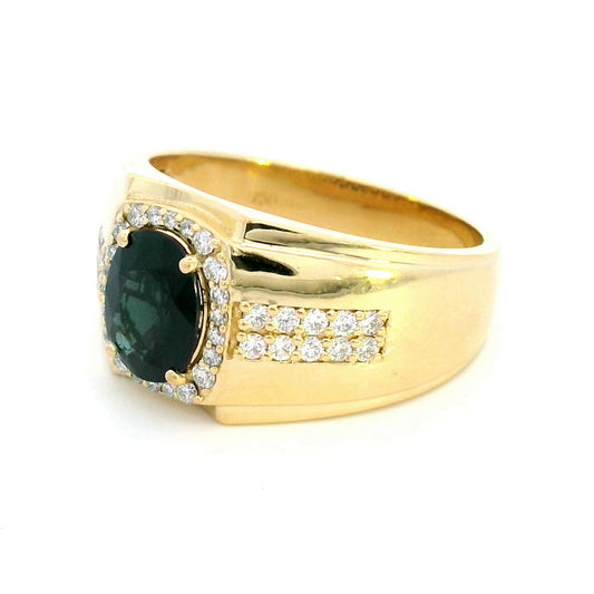 Men's 18K Gold Sapphire Ring with Diamond Halo