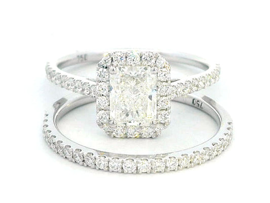Elegant Radiant Cut Diamond Engagement Ring & Matching Wedding Band in 18K White Gold | 0.63ct Center Diamond