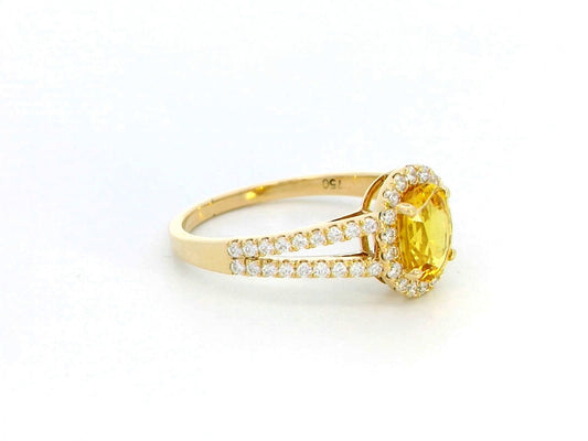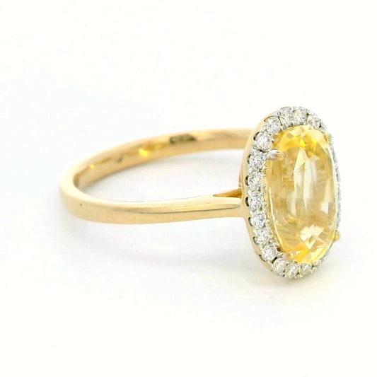 18K Yellow Gold Yellow Sapphire and Diamond Halo Ring