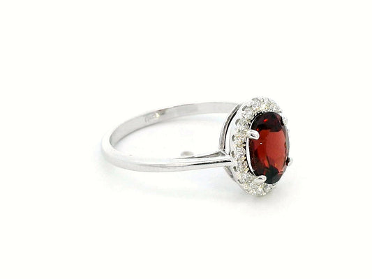 18K Gold Garnet with Diamond Halo Ring | 1.58 Carat Oval Garnet with 0.21 Carat Diamond Accents
