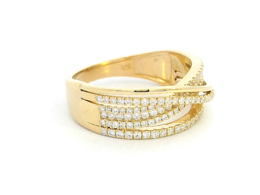 18K Yellow Gold Diamond Crossover Ring – Modern Statement Ring
