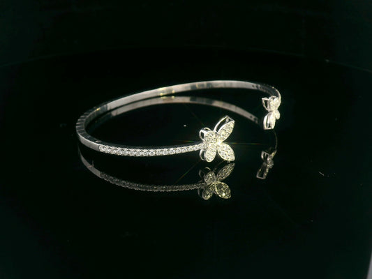 18K Gold Diamond Butterfly Bangle – Elegant Open Bangle with 0.86 Carat Natural Diamonds
