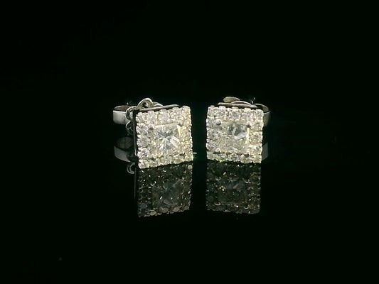 Princess Cut Diamond Halo Stud Earrings in 18K Gold – Classic Studs with Modern Elegance