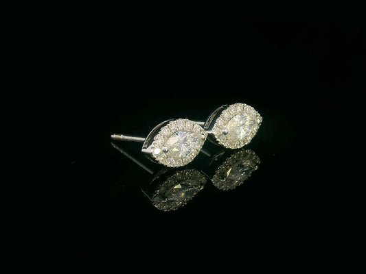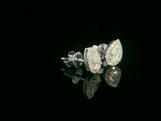 18K White Gold Pear-Shaped Diamond Halo Stud Earrings – 0.55 Carats Total