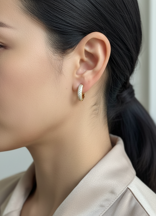 Diamond Pavé Hoop Earrings in 18K Yellow Gold