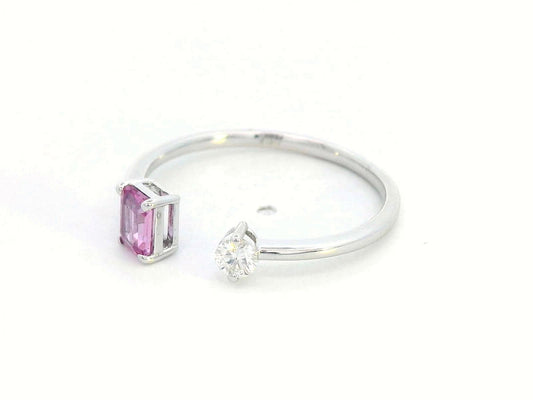 18K White Gold Toi et Moi Ring with 0.44ct Pink Sapphire & 0.11ct Diamond