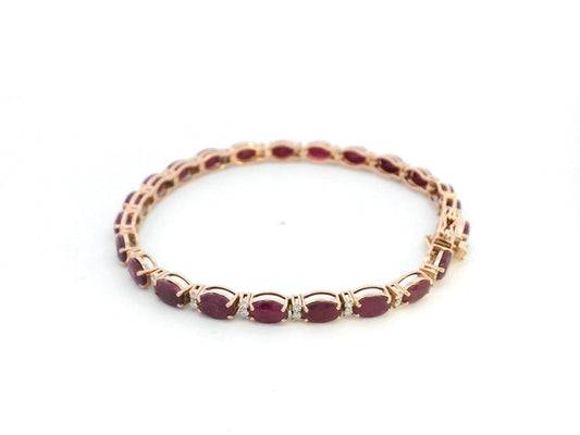 18k Rose Gold l Ruby And Diamond Tennis Bracelet l 13.94 ct Rubies