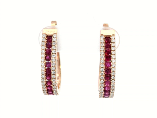 18k Rose Gold Ruby and Diamond Hoop Earrings – 0.86ct Rubies & 0.43ct Diamonds