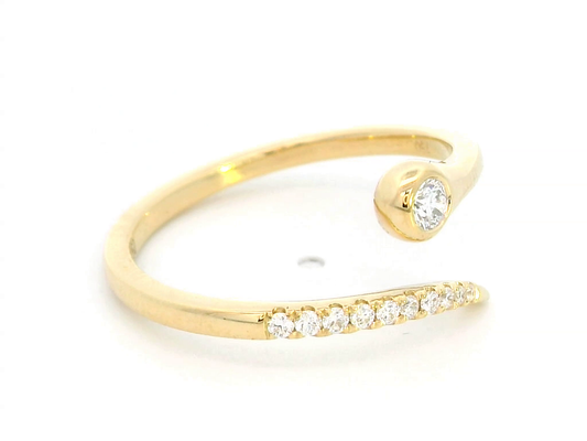 18K Yellow Gold Spiral Diamond Ring/ wrap ring with Brilliant Round Diamonds -