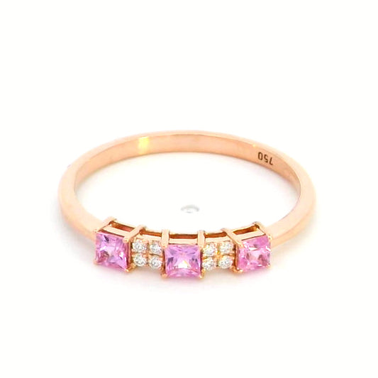 18K Rose Gold Stacking Ring with Pink Sapphires and Diamonds