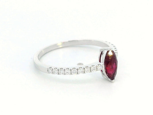 18K White Gold Marquise Ruby Ring with Diamond-Adorned Band – 0.56ct Ruby