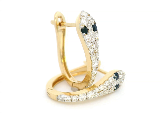 Nature-Inspired 18K Gold Snake Hoop Earrings with Diamonds & Sapphires