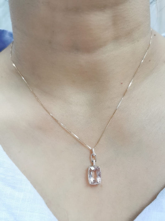 18K Rose Gold Morganite Pendant with Diamonds | 2.32ct Morganite| Cuban Link Design