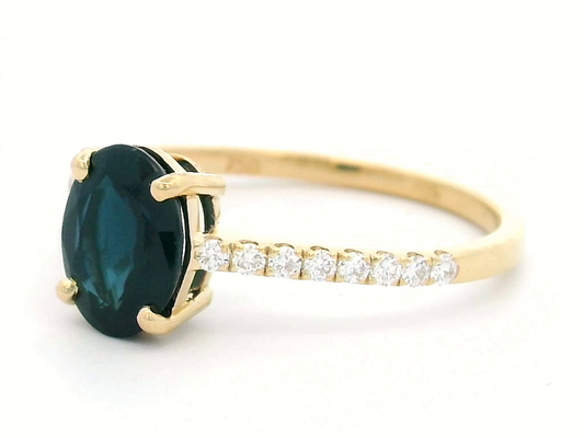 Oval Shape Blue Sapphire And Diamond Ring In 18k Yellow Gold.