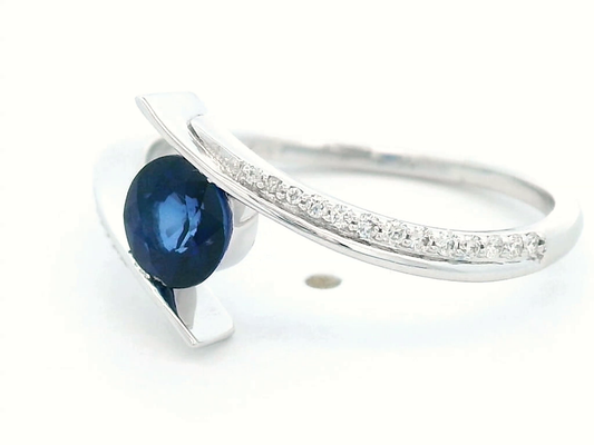 18K Gold Bypass Design Ring with 0.82 Carat Sapphire & Diamond Accents