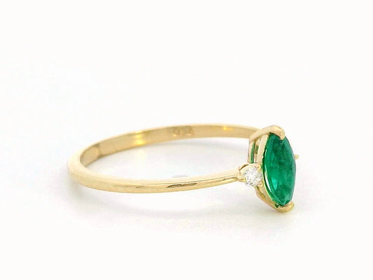 18K Gold Marquise-Cut Emerald and Diamond Ring – Elegant 0.21ct Emerald with 0.03ct Diamonds
