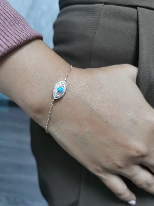 18K Gold Eye-Shaped Turquoise and Diamond Bracelet with 0.41 Carat Diamonds
