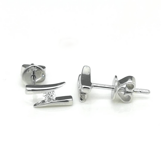 Solitaire Diamond Stud Earrings In 18k White Gold.