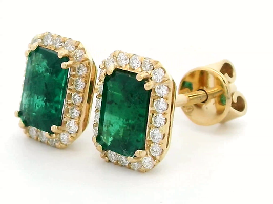 18k Gold Emerald Cut Earrings with 0.19 Carat Diamonds & 0.97 Carat Emeralds