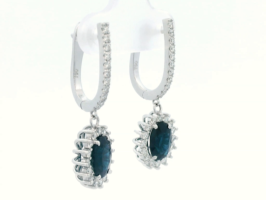 Blue Sapphire and Diamond Dangle Drop Hoop Earrings in 18k gold