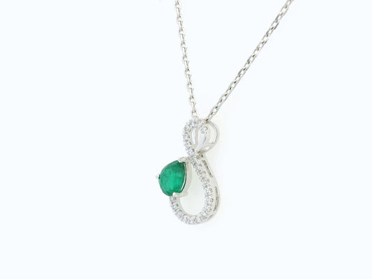 18k White Gold Emerald Pendant – 0.74ct Pear-Shaped Gemstone with Diamond Accents