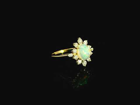 Opal & Diamond Halo Ring in 18K Yellow Gold – Oval Opal Statement Ring