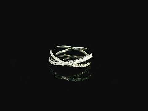 Diamond Crossover Ring in 18K White Gold – Baguette & Round Diamond Criss-Cross Ring