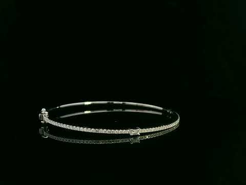 18k White Gold Diamond Bangle With Round and Baguette Diamonds | Elegant Fine Jewelry