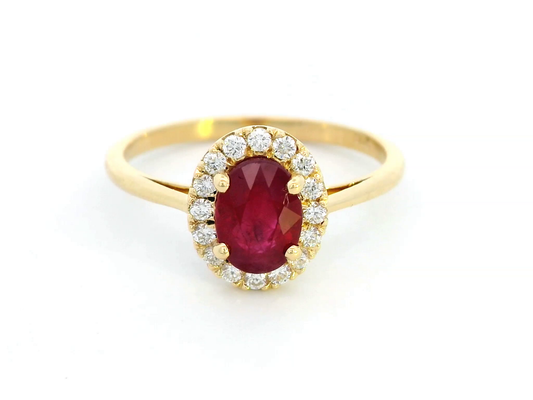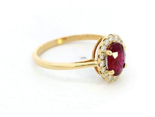 1.18 Carat Oval Ruby Ring with 0.19 Carat Diamond Halo in 18K Gold