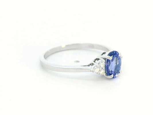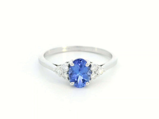 18K Gold Tanzanite and Diamond Ring – 0.93 Carat Oval Tanzanite with 0.14 Carat Diamonds