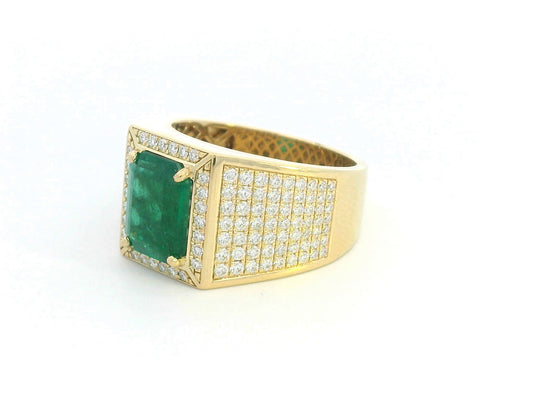 18K Yellow Gold Men's Emerald-cut Emerald Ring