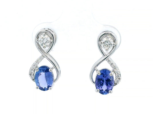 1.79 Carat Oval Tanzanite And Diamond Earrings in 18K Gold – Elegant Fine Jewelry