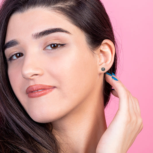 Fresh Water Black Pearl Earrings In 18k White Gold.
