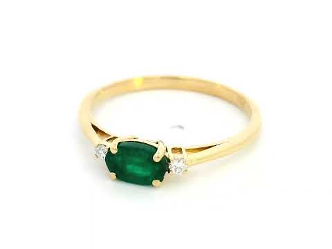 18K Yellow Gold Oval Emerald and Diamond Ring – 0.59ct Emerald