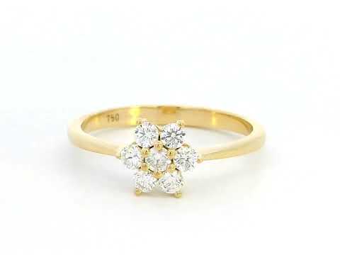 18K Yellow Gold Diamond Flower Cluster Ring | 0.40 Carat Round-Cut Diamond Cluster
