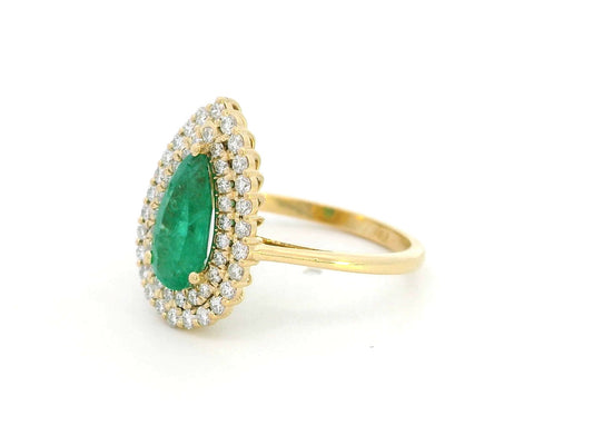 1.12 Carat Pear-Cut Emerald and 0.47 Carat Diamond Halo Ring in 18K Gold – Unique Engagement Ring