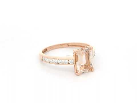 Morganite Ring Emerald Cut in 18K Rose Gold