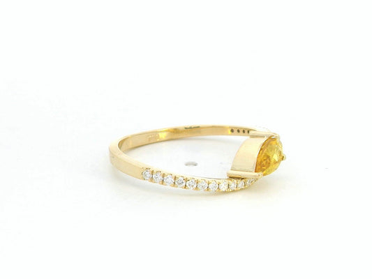 18K Yellow Gold Pear-Shaped Yellow Sapphire Ring with Diamonds – Bypass Design