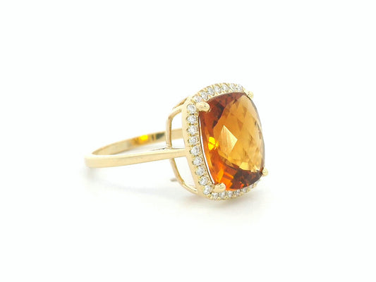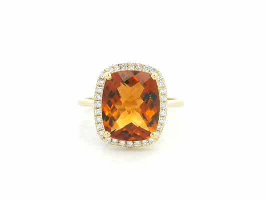 18K Yellow Gold Cushion-Cut Citrine With diamond Halo Ring – Gemstone Cocktail Ring