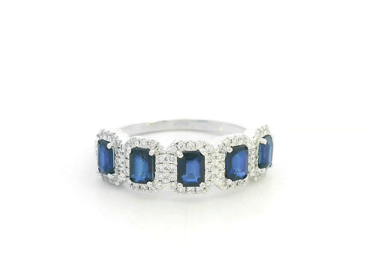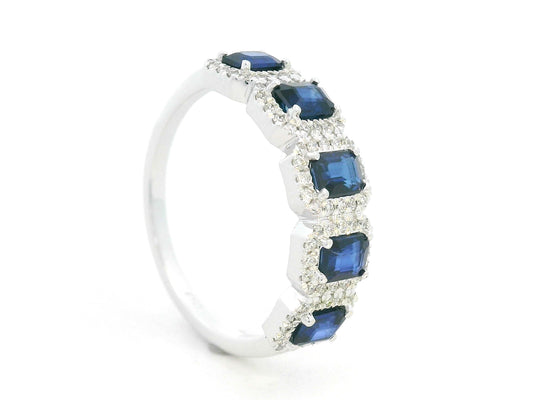 18K White Gold Emerald-cut Sapphire & Diamond Ring