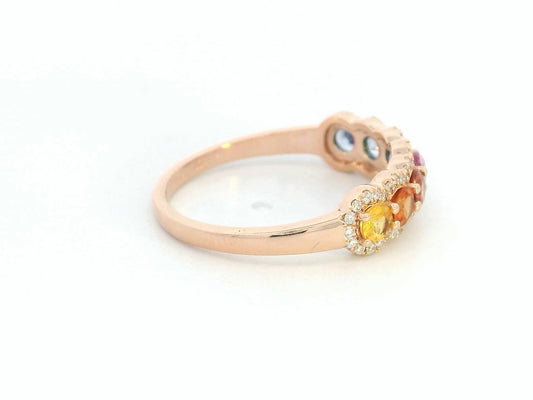 18K Rose Gold Rainbow Sapphire Ring with Diamond Accents
