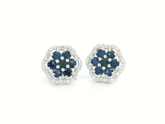 18k White Gold Blue Sapphire & Diamond Floral Stud Earrings