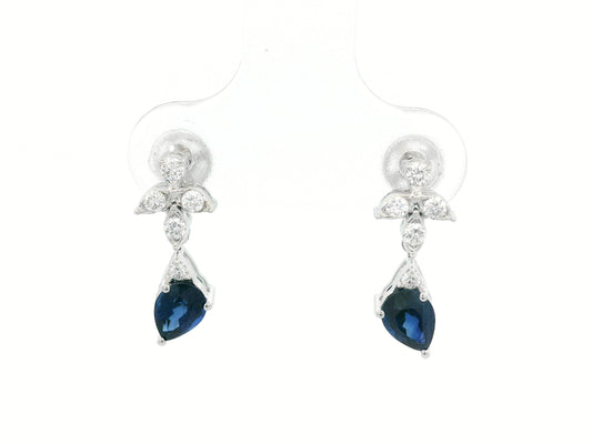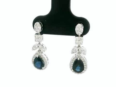 18k White Gold Pear-Cut Blue Sapphire & Diamond Teardrop Earrings