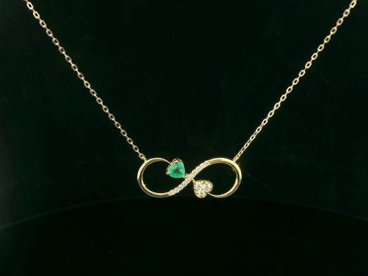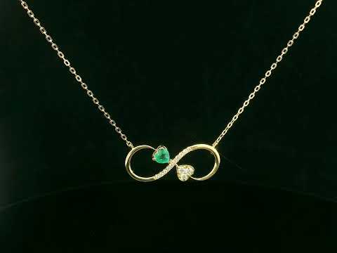 18K Yellow Gold Infinity Necklace with Emerald & Diamond Heart