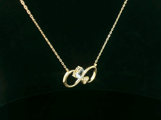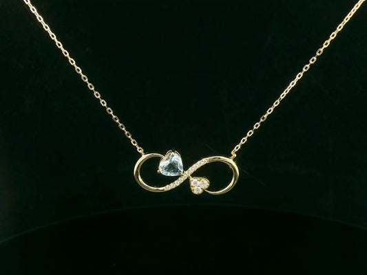 18K Yellow Gold Infinity Necklace with Aquamarine & Diamonds | Heart-Shaped Gemstone Pendant